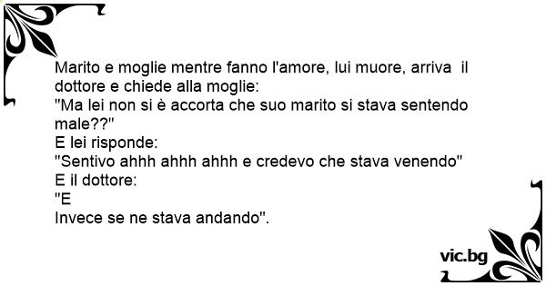 Marito e moglie mentre fanno l'amore, lui muore, arriva il dottore e chiede alla moglie: