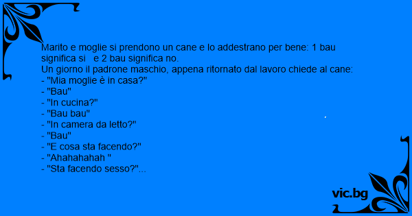 Marito e moglie si prendono un cane e lo addestrano per bene: 1 bau significa si e 2 bau significa no.