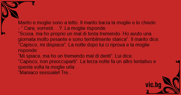 “Capisco, mi dispiace”. La notte dopo lui ci riprova e la moglie risponde: