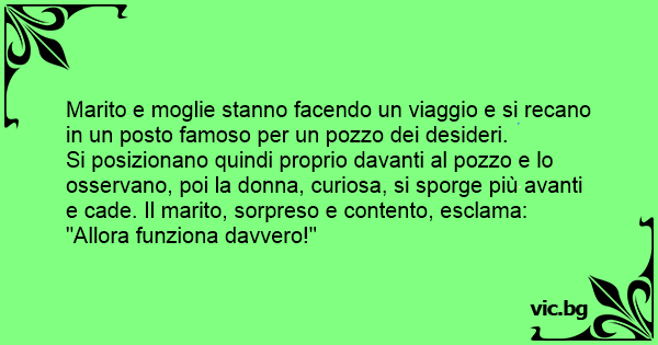 Moglie al marito: "Guarda un pozzo dei desideri! Andiamo a vedere" Si avvicinano per guardare e.. lei inciampa e cade giù Lui. "caxo, funziona!"