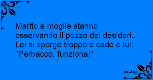 Moglie al marito: "Guarda un pozzo dei desideri! Andiamo a vedere" Si avvicinano per guardare e.. lei inciampa e cade giù Lui. "caxo, funziona!"