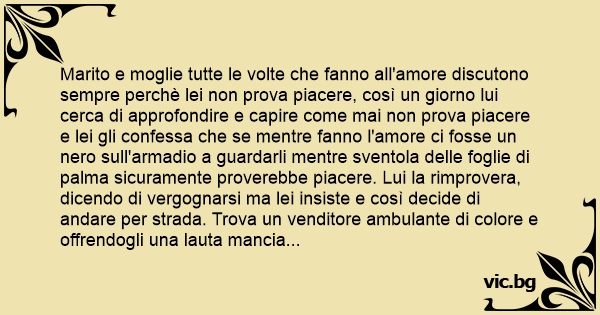 E, finito l'amplesso, il marito scende va dal nero e gli dice: