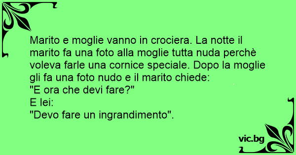 Marito e moglie vanno in crociera. La notte il marito fa una foto alla moglie tutta nuda perchè voleva farle una cornice speciale. Dopo la moglie gli fa una foto nudо e il marito chiede: