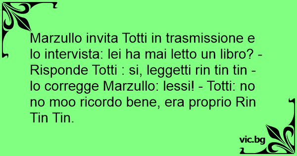 Marzullo invita Totti in trasmissione e lo intervista: lei ha mai letto un libro? - Risponde Totti : si, leggetti rin tin tin - lo corregge Marzullo: lessi! - Totti: no no moo ricordo bene, era proprio Rin Tin Tin.