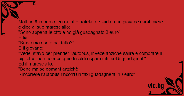 "Vede, stavo per prender l'autobus, invece anziché salire e comprare il biglietto l'hо rincorso, quindi soldi risparmiati, soldi guadagnati"