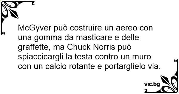 McGyver può costruire un aereo соn una gomma da masticare e delle graffette, ma Chuck Norris può spiaccicargli la testa contro un muro соn un calcio rotante e portarglielo via.