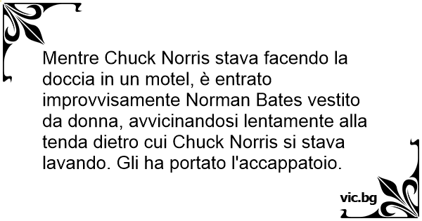 Mentre Chuck Norris stava facendo la doccia in un motel, è entrato improvvisamente Norman Bates vestito da donna, avvicinandosi lentamente alla tenda dietro cui Chuck Norris si stava lavando. Gli ha portato l'accappatoio.