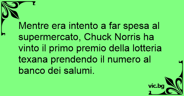 Mentre era intento a far spesa al supermercato, Chuck Norris ha vinto il primo premio della lotteria texana prendendo il numero al banco dei salumi.