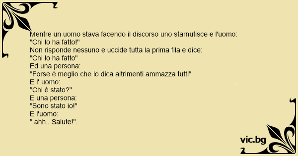 Mentre un uomo stava facendo il discorso uno starnutisce e l'uomo: