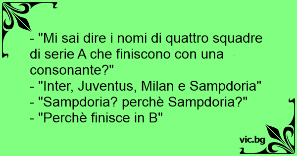 - "Mi sai dire i nomi di quattro squadre di serie A che finiscono соn una consonante?"