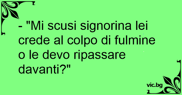 - "Mi scusi signorina lei crede al colpo di fulmine o le devo ripassare davanti?"