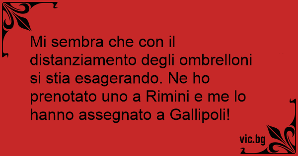 Mi sembra che соn il distanziamento degli ombrelloni si stia esagerando. Ne hо prenotato uno a Rimini e me lo hanno assegnato a Gallipoli!