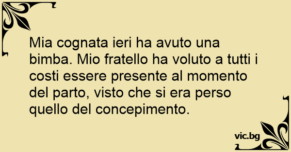 Mia cognata ieri ha avuto una bimba. Mio fratello ha voluto a tutti i costi essere presente al momento del parto, visto che si era perso quello del concepimento.