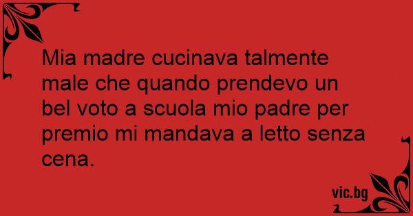 Mia madre cucinava talmente male che quando prendevo un bel voto a scuola mio padre per premio mi mandava a letto senza cena.