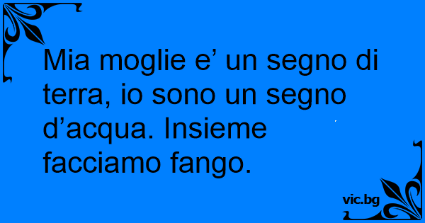 Mia moglie e’ un segno di terra, io sono un segno d’acqua. Insieme facciamo fango.