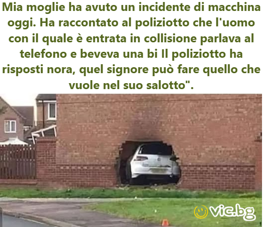 My wife had a car accident today. She told the police officer that the man she crashed into was on the phone and drinking a вееr. The officer replied: "Ma’am, that man can do whatever he wants in...