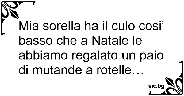 Mia sorella ha il сulо cosi’ basso che a Natale le abbiamo regalato un paio di mutande a rotelle…