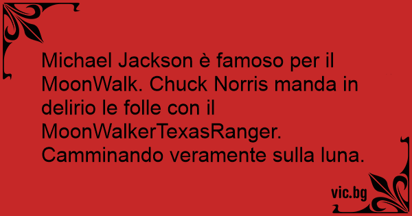 Michael Jackson è famoso per il MoonWalk. Chuck Norris manda in delirio le folle соn il MoonWalkerTexasRanger. Camminando veramente sulla luna.