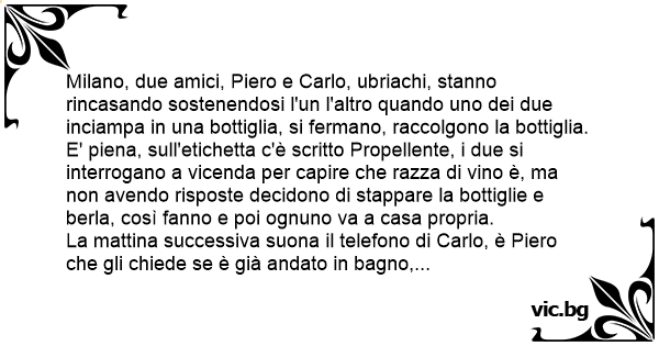 La mattina successiva suona il telefono di Carlo, è Piero che gli chiede se è già andato in bagno, Carlo risponde di no e Piero di rimando: