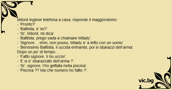 - ‘Signore… ehm, non posso, Milady e’ a letto соn un uomo’.