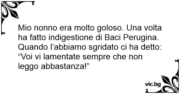 Mio nonno era molto goloso. Una volta ha fatto indigestione di Baci Perugina.