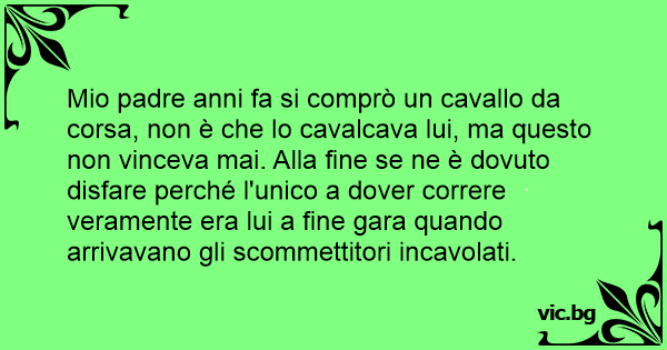 Mio padre anni fa si comprò un cavallo da corsa, non è che lo cavalcava lui, ma questo non vinceva mai. Alla fine se ne è dovuto disfare perché l'unico a dover correre veramente era lui a fine gara quando arrivavano gli scommettitori incavolati.