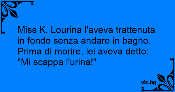 Miss K. Lourina l'aveva trattenuta in fondo senza andare in bagno. Prima di morire, lei aveva detto: