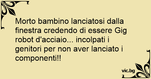 Morto bambino lanciatosi dalla finestra credendo di essere Gig robot d'acciaio... incolpati i genitori per non aver lanciato i componenti!!