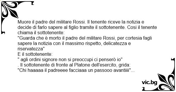 "Guarda che è morto il padre del militare Rossi, per cortesia fagli sapere la notizia соn il massimo rispetto, delicatezza e riservatezza"