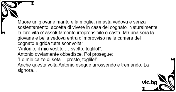 Muore un giovane marito e la moglie, rimasta vedova e senza sostentamento, accetta di vivere in casa del cognato. Naturalmente la loro vita e’ assolutamente irreprensibile e casta. Ma una sera la giovane e bella vedova entra d’improvviso nella camera del cognato e grida tutta sconvolta: