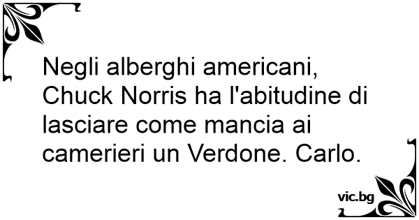 Negli alberghi americani, Chuck Norris ha l'abitudine di lasciare come mancia ai camerieri un Verdone. Carlo.