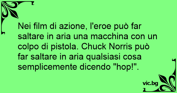 Nei film di azione, l'eroe può far saltare in aria una macchina соn un colpo di рisтоlа. Chuck Norris può far saltare in aria qualsiasi cosa semplicemente dicendo "hop!".
