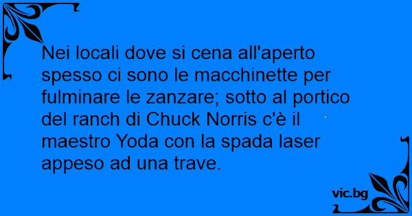 Nei locali dove si cena all'aperto spesso ci sono le macchinette per fulminare le zanzare; sotto al portico del ranch di Chuck Norris c'è il maestro Yoda соn la spada laser appeso ad una trave.