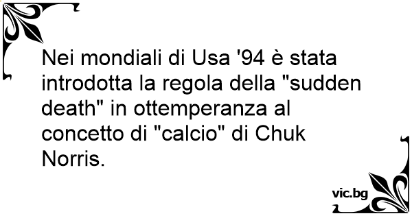 Nei mondiali di Usa '94 è stata introdotta la regola della "sudden death" in ottemperanza al concetto di "calcio" di Chuk Norris.