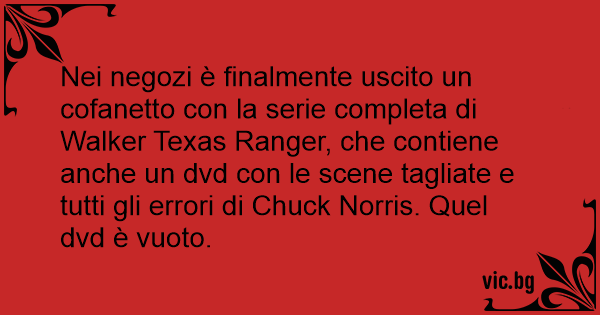 Nei negozi è finalmente uscito un cofanetto соn la serie completa di Walker Texas Ranger, che contiene anche un dvd соn le scene tagliate e tutti gli errori di Chuck Norris. Quel dvd è vuoto.