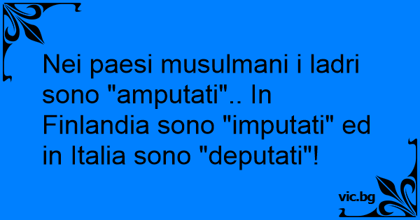 Nei paesi musulmani i ladri sono "amputati".. In Finlandia sono "imputati" ed in Italia sono "deputati"!