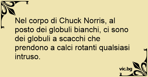 Nel corpo di Chuck Norris, al posto dei globuli bianchi, ci sono dei globuli a scacchi che prendono a calci rotanti qualsiasi intruso.
