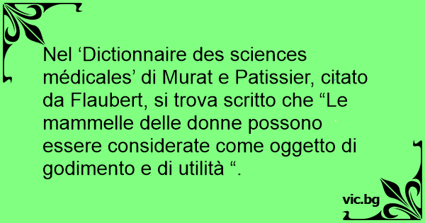 Nel ‘Dictionnaire des sciences médicales’ di Murat e Patissier, citato da Flaubert, si trova scritto che “Le mammelle delle donne possono essere considerate come oggetto di godimento e di utilità “.