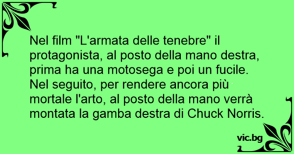 Nel film "L'armata delle tenebre" il protagonista, al posto della mano destra, prima ha una motosega e poi un fucile. Nel seguito, per rendere ancora più mortale l'arto, al posto della mano verrà montata la gamba destra di Chuck Norris.