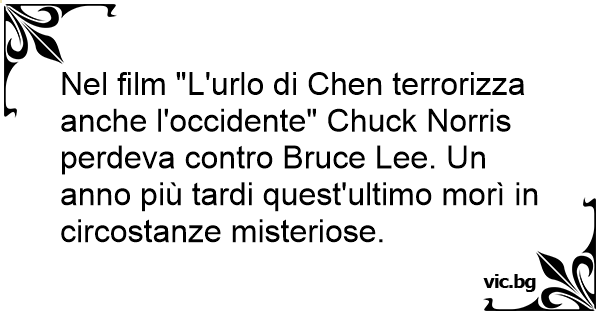 Nel film "L'urlo di Chen terrorizza anche l'occidente" Chuck Norris perdeva contro Bruce Lee. Un anno più tardi quest'ultimo morì in circostanze misteriose.