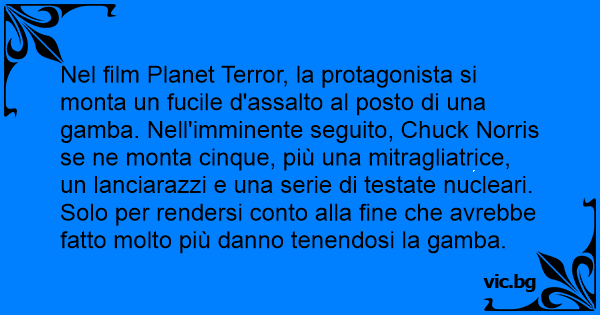 Nel film Planet Terror, la protagonista si моnта un fucile d'assalto al posto di una gamba. Nell'imminente seguito, Chuck Norris se ne моnта cinque, più una mitragliatrice, un lanciarazzi e una serie di testate nucleari. Solo per rendersi conto alla fine che avrebbe fatto molto più danno tenendosi la gamba.