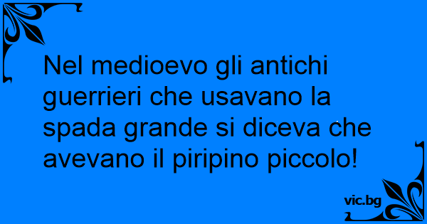 Nel medioevo gli antichi guerrieri che usavano la spada grande si diceva che avevano il piripino piccolo!