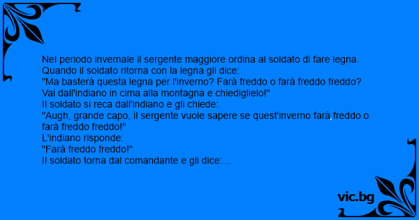 "Augh grande capo, il sergente vorrebbe sapere se quest'inverno farà freddo freddo freddo oppure se farà freddo freddo freddo freddo?"