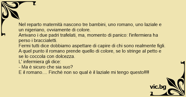 Nel reparto maternità nascono tre bambini, uno romano, uno laziale e un nigeriano, ovviamente di colore.