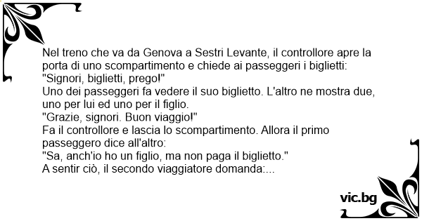 Nel treno che va da Genova a Sestri Levante, il controllore apre la porta di uno scompartimento e chiede ai passeggeri i biglietti: