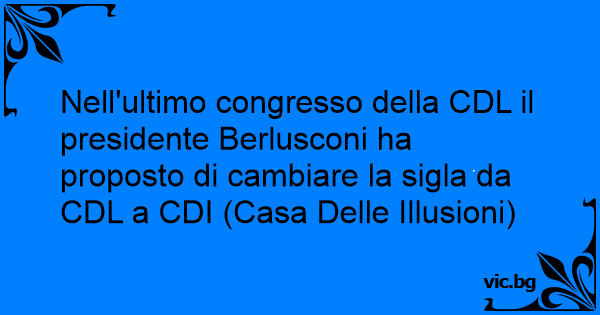 Nell'ultimo congresso della CDL il presidente Berlusconi ha proposto di cambiare la sigla da CDL a CDI (Casa Delle Illusioni)