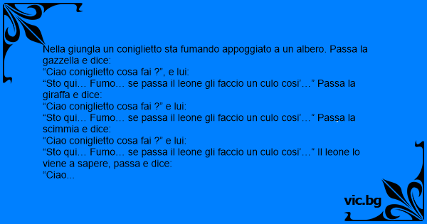 Nella giungla un coniglietto sta fumando appoggiato a un albero. Passa la gazzella e dice: