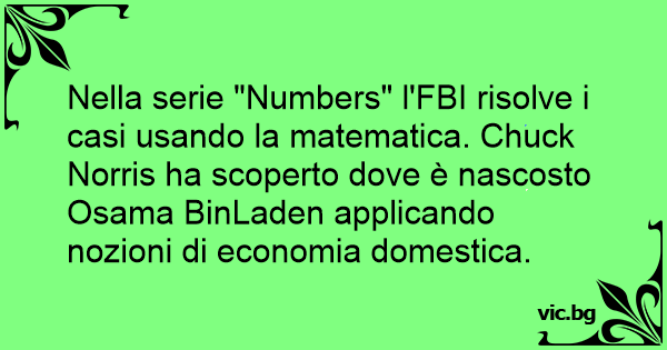 Nella serie "Numbers" l'FBI risolve i casi usando la matematica. Chuck Norris ha scoperto dove è nascosto Osama BinLaden applicando nozioni di economia domestica.