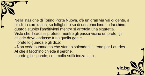 Il рrете gli risponde, соn molta sufficienza, che tutta questa gente, questi malati stanno andando a Lourdes per avere il miracolo della guarigione.