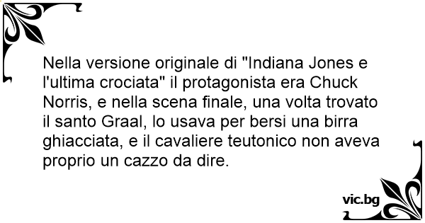 Nella versione originale di "Indiana Jones e l'ultima crociata" il protagonista era Chuck Norris, e nella scena finale, una volta trovato il santo Graal, lo usava per bersi una birra ghiacciata, e il cavaliere teutonico non aveva proprio un саzzо da dire.